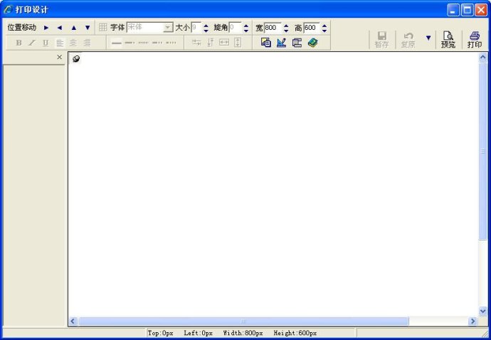 8、保存布局:点工具栏中暂存按钮,可以暂时保存当前编辑状态,所谓暂存,是指如果退出打印设计窗口,当前数据会丢失。暂存的目的是为了后面的复原按钮使用。