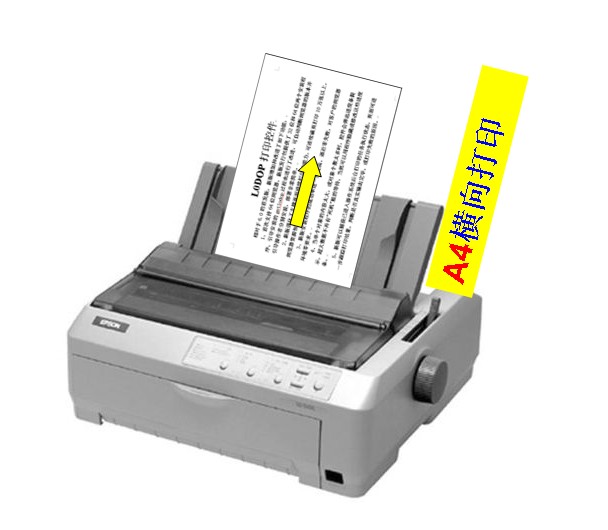 横向打印也叫旋转打印,输出时内容逆时针旋转90度,此时特别注意A4纸不能跟着旋转,一定按原放纸方式,下面是A4横向打印的效果,黄箭头代表走纸方向: