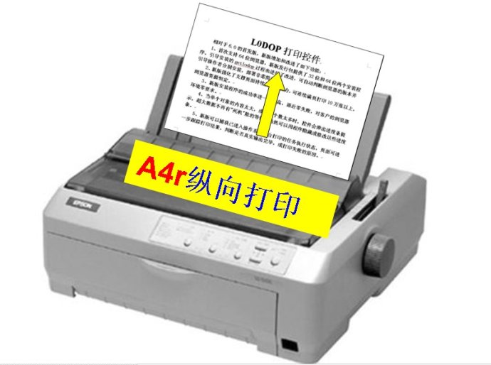 以上所称“A4”纸的大小是:高297毫米,宽210毫米(行业规则定的),使用该纸时其进纸方向与其高度方向必须一致,这一点特别重要,如果进纸方向错了,就变成:高210毫米,宽297毫米(自定纸张时可设宽比高还大),此时就不是“A4”纸了,而是“A4r”(行业规则一般不推荐这种纸张,只有自定义纸张才有)纸,下面是A4r纵向打印的效果: