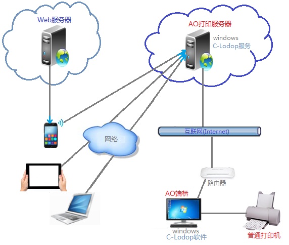 相比于传统网络打印,打印机由被动链接变为主动链接,这种部署的优势很明显,既可以外网异地打印,也可以内外网本地打印,对打印两端的网络位置无要求,从而轻松实现广域网远程打印,手机、平板打印问题也一举搞定。鉴于当前宽带普及,加之云服务器租金越来越便宜,这都为AO打印的流行创造了条件。