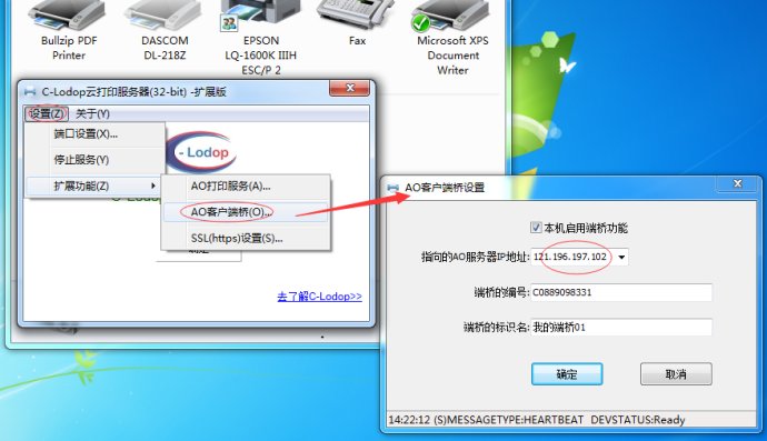 其中AO打印服务是有C-Lodop扩展版程序担任,AO端桥是由另一个同样版本C-Lodop程序担任。本部署分如下两部分,现在分章节详解: