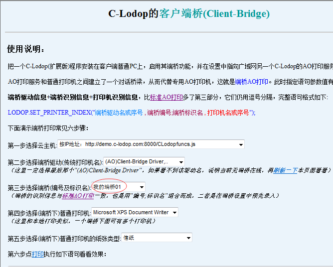 LODOP.SET_PRINTER_INDEX("端桥驱动名或序号,端桥编号;端桥标识名,打印机名或序号");