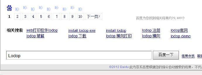注意要用百度(http://www.baidu.com/)而不是谷歌哟,因为我发现百度的“相关搜索关键字”是动态变化的,是受这些关键字近期被输入次数决定的,如下是搜“Lodop”的结果: