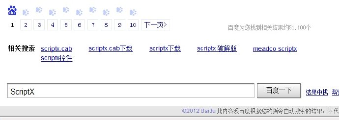 其“相关搜索”关键字最多10个(2行5列),再多就转到进一步的相关搜索页面了。去年春节期间由于放假原因我偶然发现这里只剩下一个了,于是一直观察其变化情况,竟然与各个节假日有关,我自己曾试图通过频繁搜索来改变它,但根本没作用,估计与IP和绝对量有关联。以下是Lodop另外两个主要竞争对手(关键字ScriptX和的搜索结果: