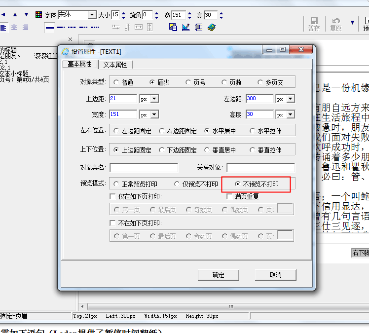选中不要打印和预览的,设置属性界面:
